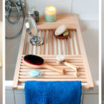 Une table en bois comme support de vasque