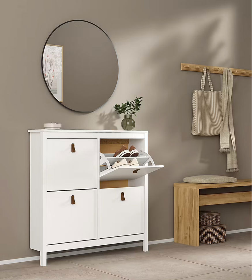 Les chaussures s'empilent sur le sol de l'entrée, et vous n'en pouvez plus de vous prendre les pieds dedans ? Investissez dans un meuble à chaussures peu profond, parfait pour ranger les paires du quotidien sans empiéter sur le passage.