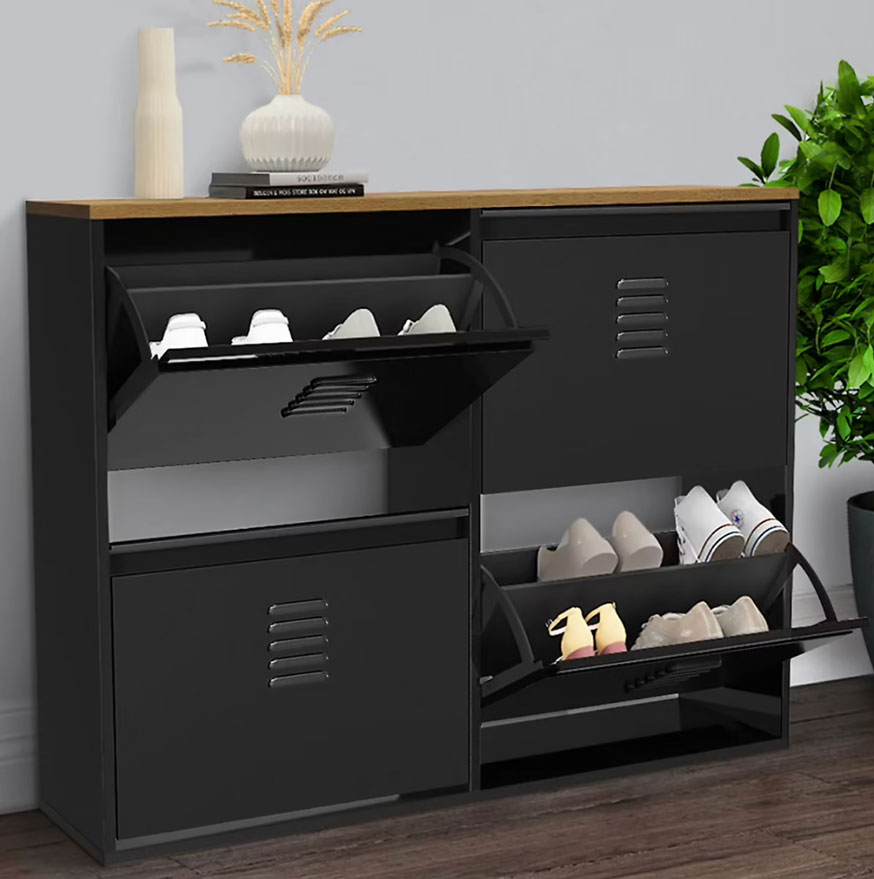 Meuble à Chaussures avec 3 Abattants et Rangement Gain de Place Meuble rangement chaussures 2 niveaux Madrid Meuble rangement chaussures 3 niveaux Meuble à chaussures 20 paires ESTER 4 portes métal