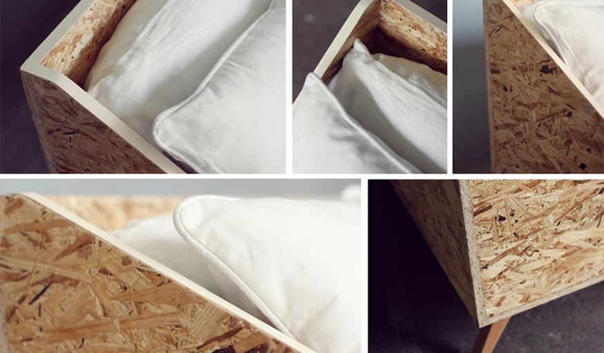 Enfin, la designer danoise Charlotte Høncke ne travaille pas l'OSB pour créer ses meubles, ici le canapé Aura, mais s'en sert pour sublimer ses créations.