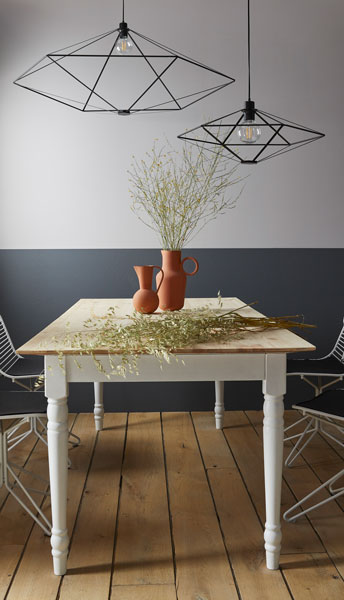 “En revanche, n'oubliez pas de respecter un écart de 90 centimètres entre la table et le luminaire”, précise Marie Sarasin. Prévoyez un peu de hauteur donc pour ne pas éblouir ou créer un obstacle au niveau du regard !