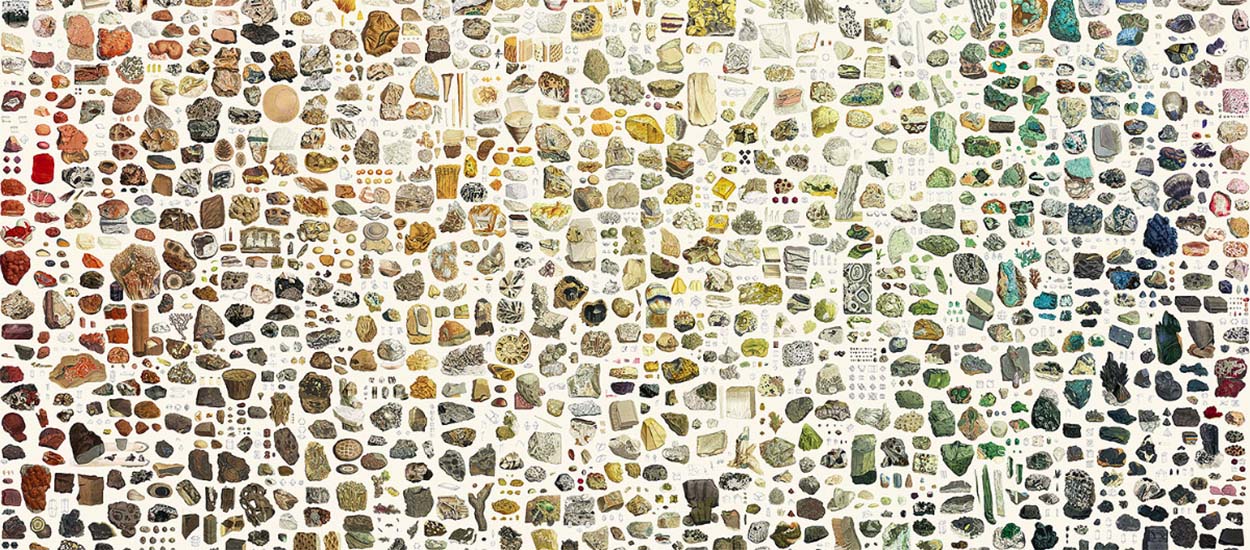 Tout commence sur le site c82.net/mineralogy. Dézoomez et vous trouvez toutes les pierres et minéraux, soigneusement classées par Nicholas Rougeux pour créer un ensemble harmonieux.