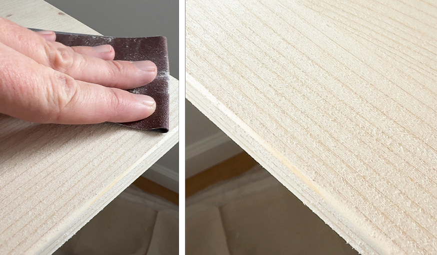11. Prenez le plateau et poncez les arêtes au grain 180 pour les adoucir et obtenir une jolie finition.