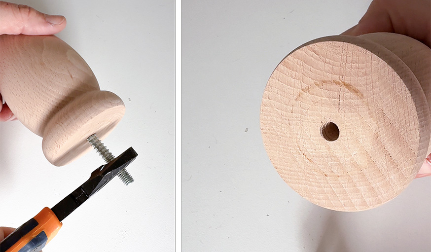 2. Retirez la tige filetée de pieds en la serrant avec la pince universelle d'une main et en tournant le pied de l'autre.