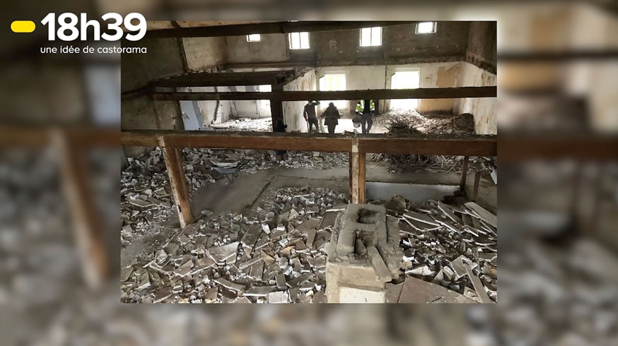 À l'intérieur, tout est à refaire. Le couple confie le gros œuvre (structure, toiture, ouvertures) aux artisans, mais réalise tout le reste eux-mêmes : ponçage, sols, peinture, carrelage, luminaires... Ils gèrent également une partie essentielle du chantier : la démolition, finalement effectuée en famille et entre amis. "La démolition, c'est pas dur, ça prend du temps, il faut pas hésiter à faire appel à la famille, les amis. On a vraiment économisé", souligne Élise.