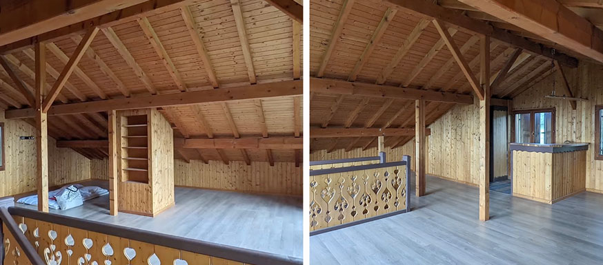 Pour organiser les travaux, ils décident d'avancer par étapes : "Le chalet a trois étages. On a commencé par rénover tout le rez-de-chaussée pour créer un studio locatif à terme. Mais c'était aussi dans l'idée d'y habiter lorsqu'on allait rénover les deux étages supérieurs." Une stratégie payante qui leur a permis de vivre sur place tout en transformant le reste de la maison.