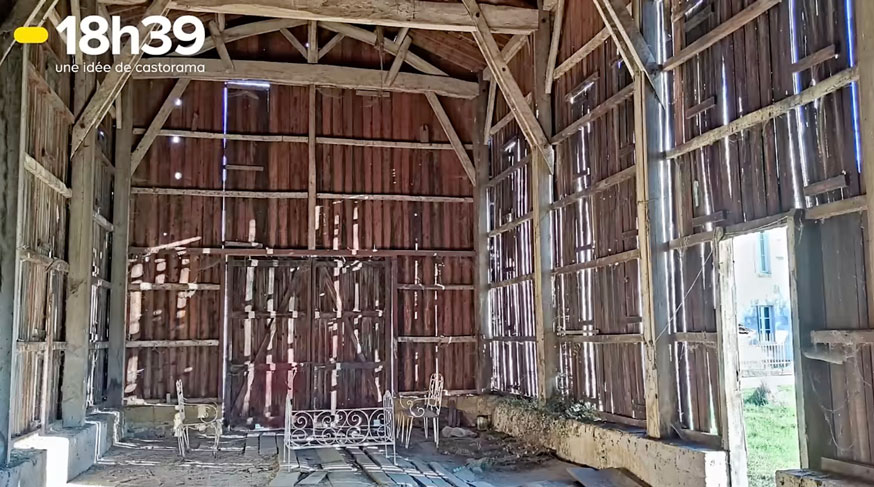 À l'origine, le séchoir est entièrement fermé, ponctué seulement de petits volets. Marine et Clément font le choix radical de tout ouvrir. "Le bardage et la structure ont sauté, on a tout cassé, on a tout refait, parce qu'en fait tout était pourri", explique Marine. Seules les fermes de la charpente sont conservées. "Elles étaient en parfait état, on les a juste éclaircies avec l'aéro-gommage".