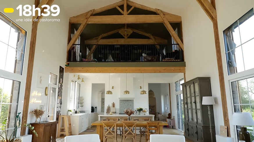 Quand Marine découvre cet ancien séchoir à tabac, elle n'a pas besoin de longs discours pour s'y projeter. "Quand je suis arrivée ici, j'ai vu les hauteurs sous plafond. Je voulais une pièce de vie grande, très grande, avec beaucoup de hauteur", raconte-t-elle. Orienté plein sud, le bâtiment coche d'emblée toutes les cases : volume, lumière, potentiel. Même si rien n'est aménagé, en partant de zéro à même la terre battue, Marine savait : "qu'il y allait avoir toutes les cartes que je voulais".
