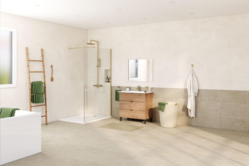 L'avantage : les grands formats sont généralement des carreaux rectifiés, c'est-à-dire qu'ils sont redécoupés après la cuisson. Les bords sont donc très droits et permettent de poser des joints fins, pour encore plus de modernité.