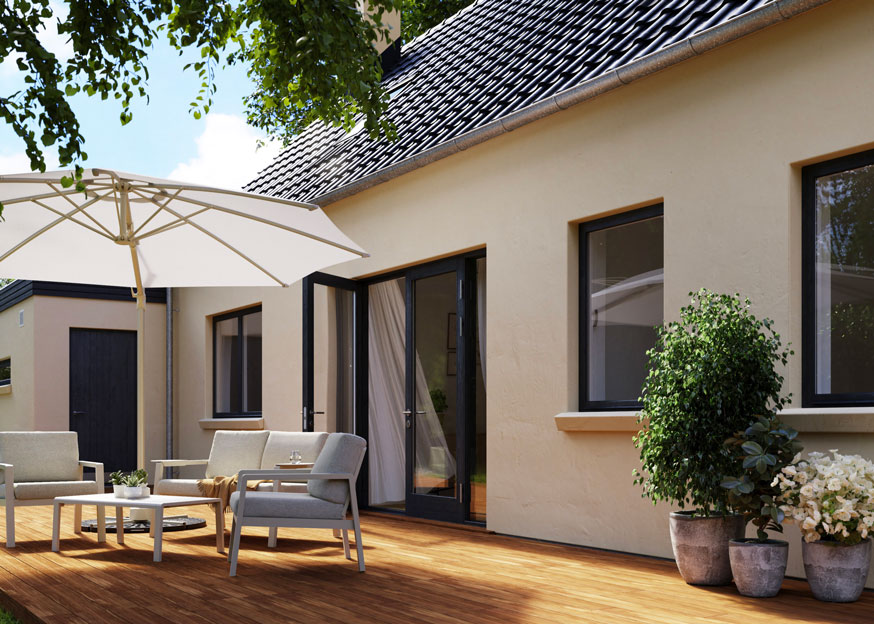Compatible avec la majorité des façades, l'enduit décoratif permet d'uniformiser et de protéger les murs extérieurs tout en apportant une touche esthétique (teintes variées, effets lissés ou grattés). Sur façade bois, il nécessite cependant une couche d'isolant type polystyrène : on parle alors d'isolation thermique par l'extérieur.
